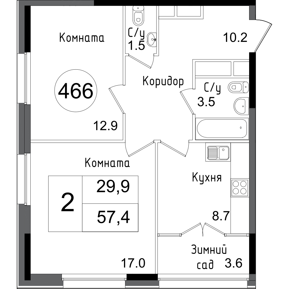 | Январь 2023 | 58,6-90,7 м2 | 16 968 400 - 28 352 820 ₽ | ~306 224 ₽ | |