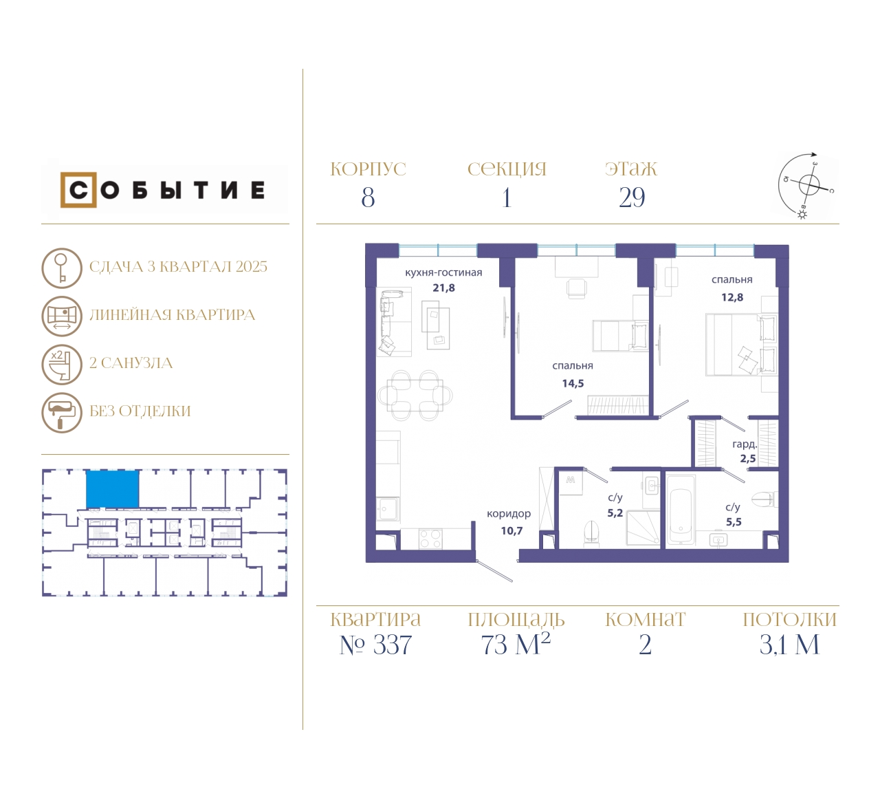 О ПРОЕКТЕ Квартал СОБЫТИЕ расположен в районе Раменки на престижном западе Москвы. Это один из самых зеленых и экологически чистых районов столицы со множеством парков и заповедников: природные заказники "Воробьевы горы" и "Долина реки Сетунь", парк Олимпийской деревни, парк 50-летия Октября, парк Победы. Здесь расположены ведущие вузы страны: до МГУ им. М.В. Ломоносова - 3,5 км, до МГИМО и... Читать продолжение