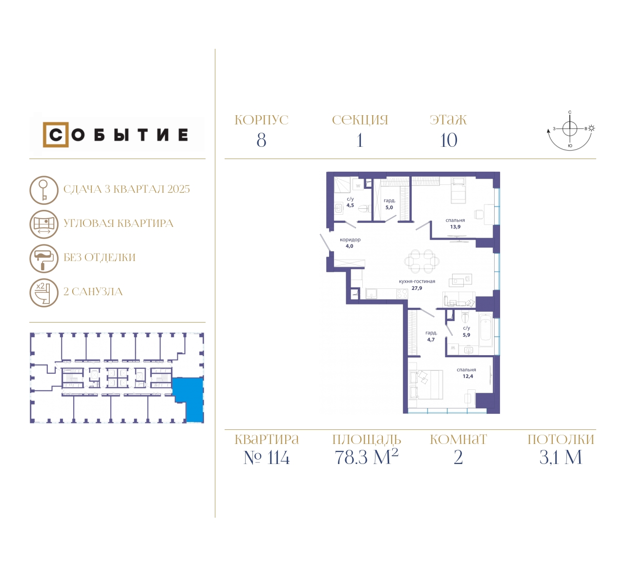 2-комнатная квартира  78.3 м2
