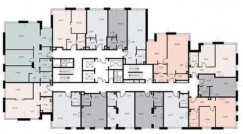 С 4 по 12 этаж количество апартаментов уменьшается до одиннадцати,