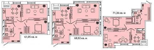 В корпусах Б2 и Б3 предлагаются исключительно угловые двухкомнатные квартиры площадью от 61 до 72 кв. м: