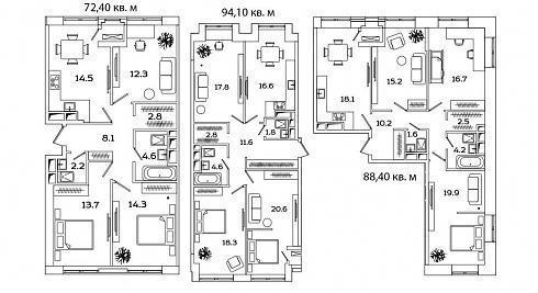 | Февраль 2017 | 71,4-94 м2 | 10 804 493 - 13 829 280 ₽ | ~149 296 ₽ | |