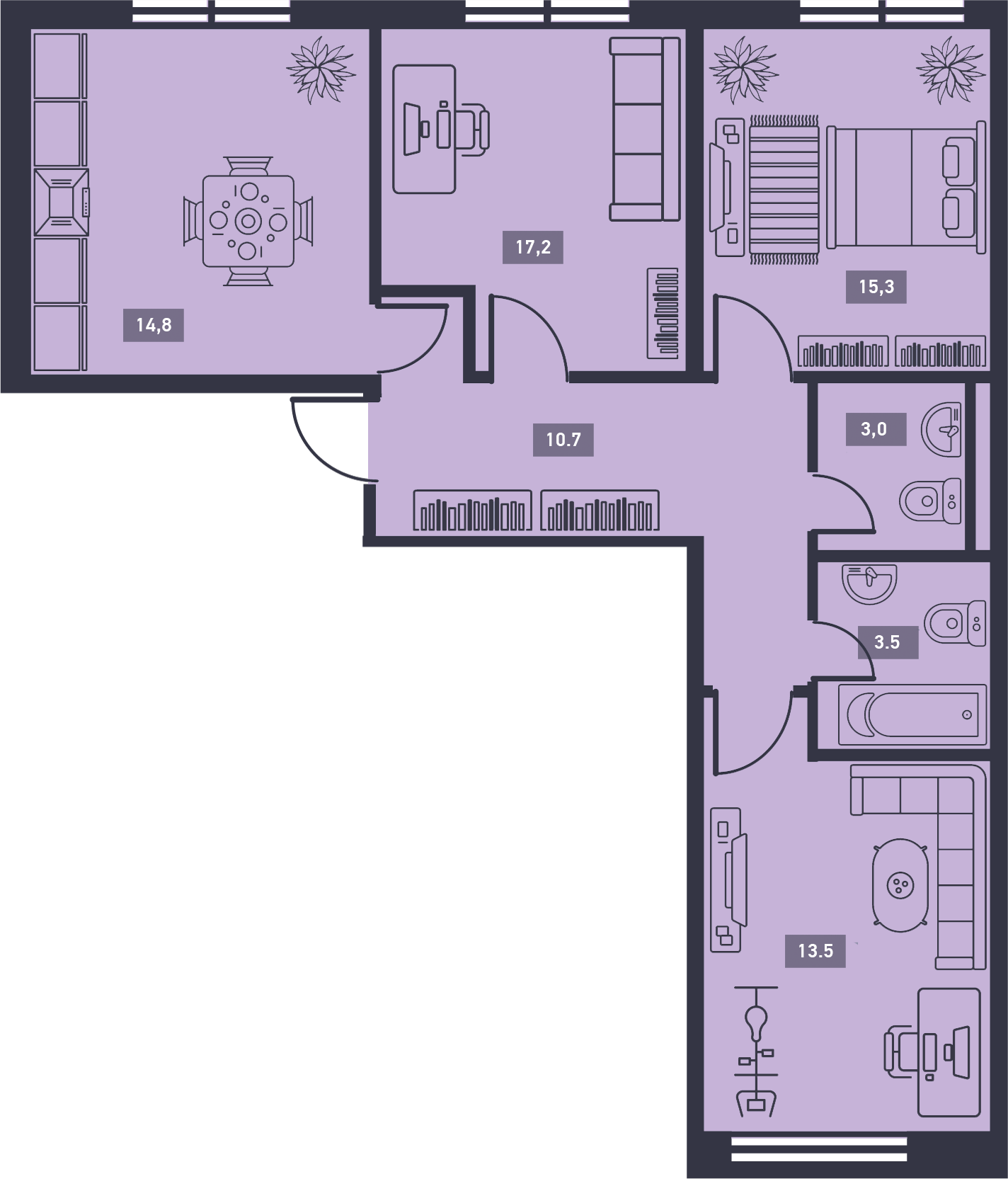 Квартиры в третьей и четвертой секциях сдаются в состоянии свободной планировки.