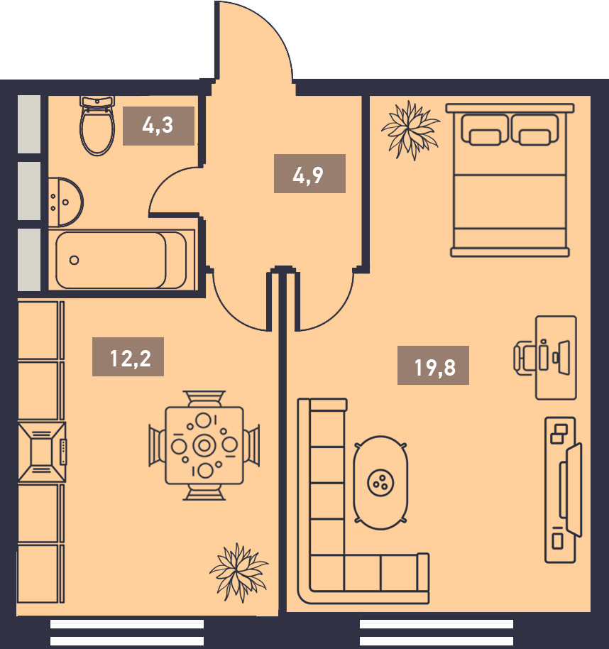 | Декабрь 2019 | 41,2-43,1 м2 | 7 644 000 - 9 826 800 ₽ | ~207 986 ₽ | |