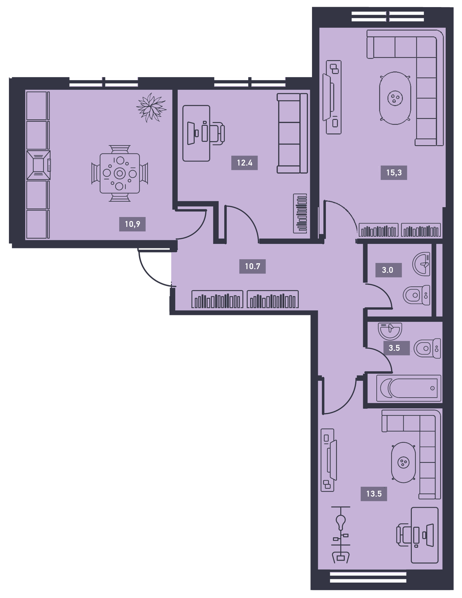 Квартиры в третьей и четвертой секциях сдаются в состоянии свободной планировки.