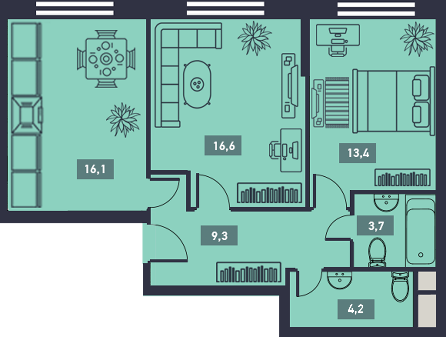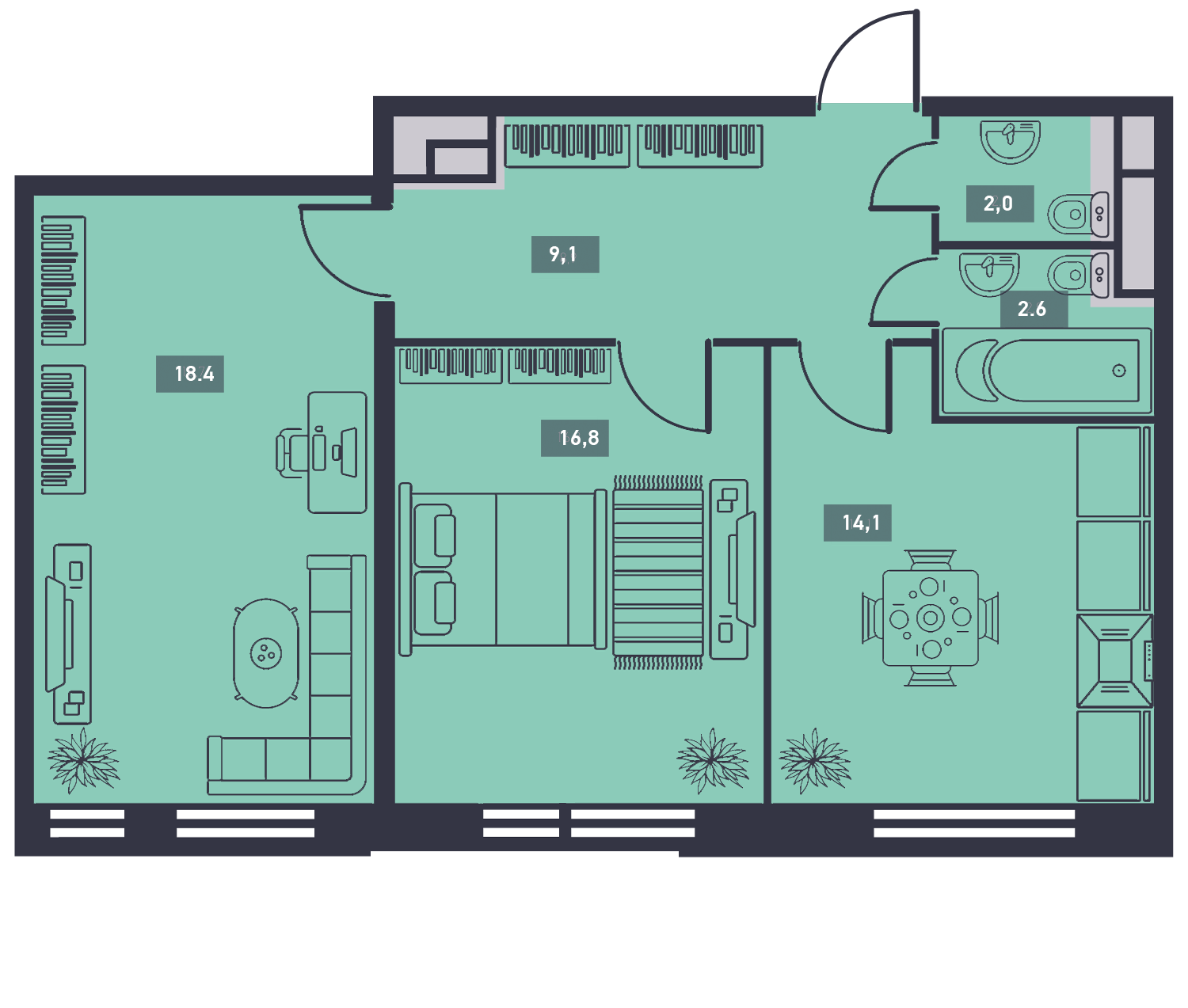 Обожаемые инвесторами евро-двушки раскупаются едва ли не в первую очередь, среди угловых двухкомнатных квартир можно найти варианты с балконом: