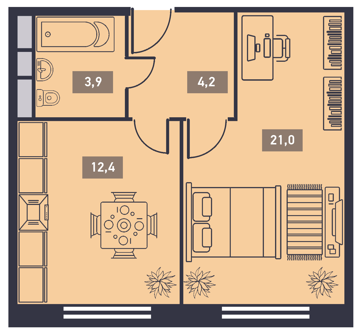 Рассуждать о разнообразии представленных планировочных решений применительно к студиям и однокомнатным квартирам не приходится – принципы понятны, несущественные различия кроются лишь в метражах: