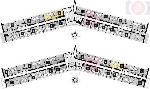 Какой-либо закономерности в распределении количества апартаментов на отдельно взятом этаже в The Book не прослеживается, все устроено сугубо индивидуально. На некоторых этажах в левом и правом крыле находятся 8+8: