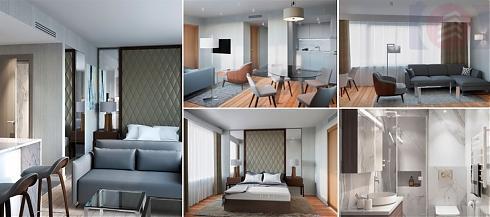 3. С 14 по 18 этажи находятся 104 сервисных апартамента, предназначенных для кратковременной сдачи в аренду.