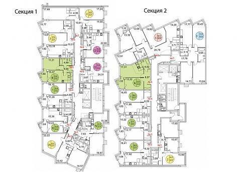 2 секция: 22 этажа, первый этаж нежилой, 2-22 этажи – 7 квартир и 3 лифта.
