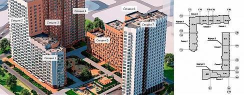 С лифтами здесь, в целом, все обстоит неплохо, потери во времени при их ожидании если и будут, то окажутся незначительными. Самой малонаселенной является секция №6, больше всего квартир находится в секциях №1 и №5: