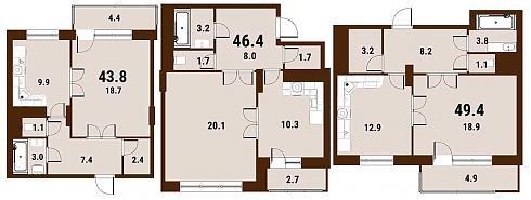 Что касается непосредственно площадей квартир, то по формальным признакам, они балансируют на границе комфорт- и бизнес-класса.