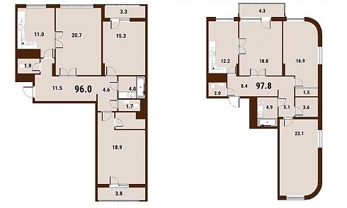 | Март 2018 | 95,7-97,9 м2 | 22 680 709 - 24 943 010 ₽ | ~248 040 ₽ | |