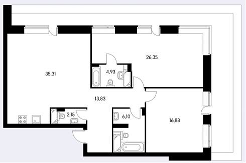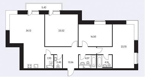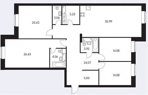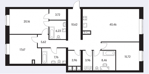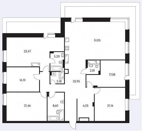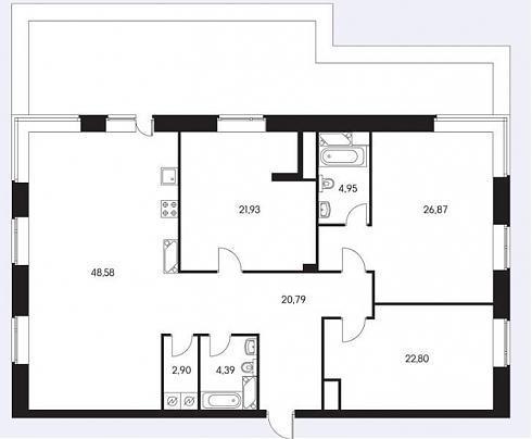 Так выглядит "средняя" четырехкомнатная квартира в данном ЖК: