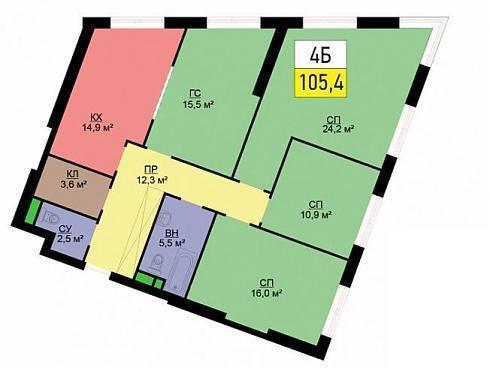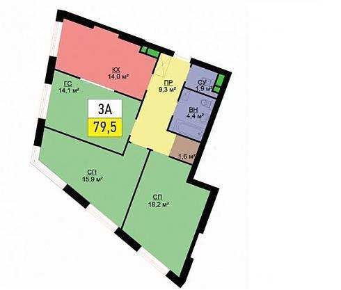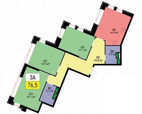 То же самое разделение наблюдается в трехкомнатных квартирах, самые небольшие из которых имеют площадь 66 кв. м: