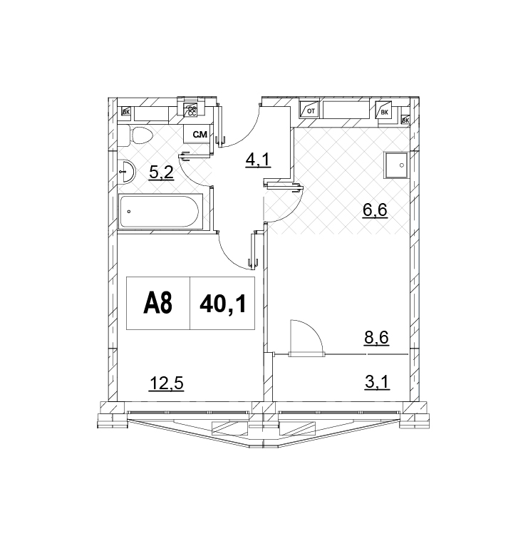 Однокомнатные квартиры при сопоставимой площади отличаются наличием лоджии и гардеробной при входе, метражами санузлов и квадратами кухни: