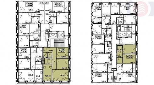 На лестничных клетках первого подъезда этого корпуса размещены 5 квартир, во втором подъезде – 6 квартир. Лифтов в любом случае будет два, при этом оба обучены спускаться на уровень паркинга.