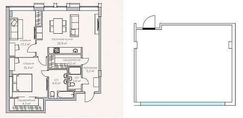 а во втором варианте у Вас получится лишь однокомнатная квартира: