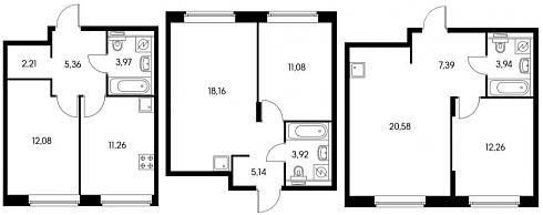 Угловые планировки трехкомнатных квартир характерны небольшим метражом. "Распашонки" в этом плане превосходят их по полной программе: