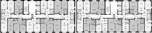 В 9-этажных секциях на лестничной клетке расположено от пяти до восьми квартир, обслуживаемых всего одним грузопассажирским лифтом: