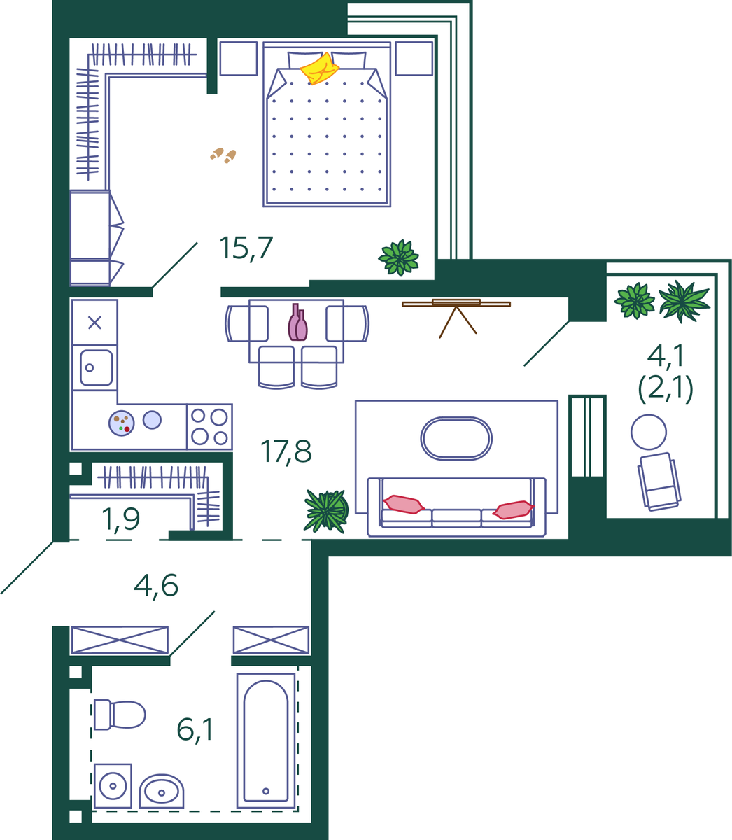| Июнь 2023 | 39,7-56,7 м2 | 26 714 652 - 35 649 523 ₽ | ~656 465 ₽ | 4.98% |