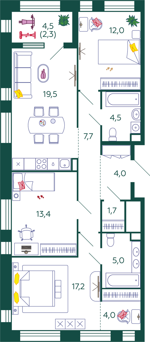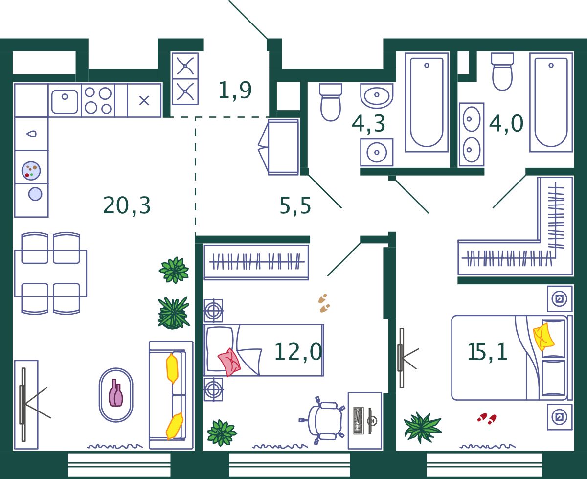 | Июль 2023 | 54,5-77,6 м2 | 32 232 377 - 46 566 005 ₽ | ~601 514 ₽ | 1% |