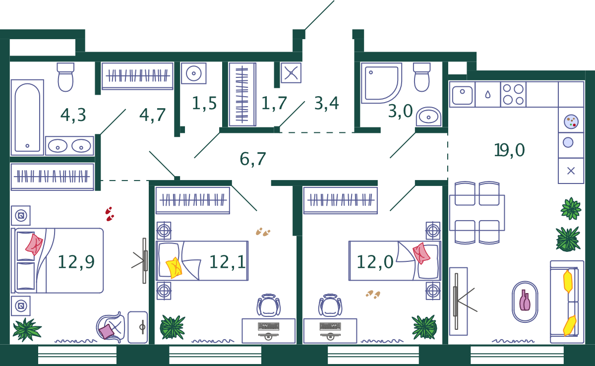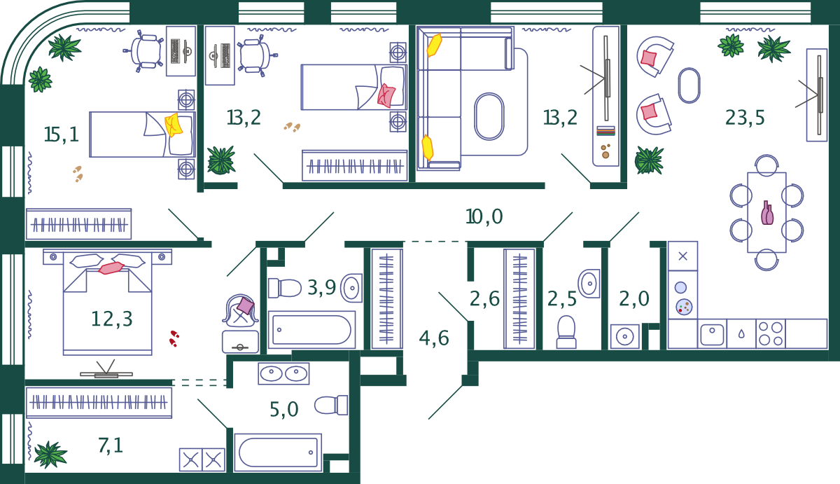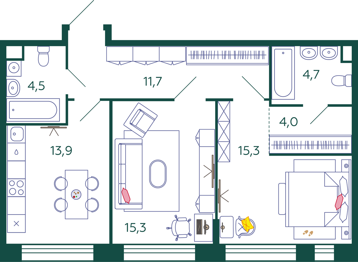 | Июнь 2023 | 39,7-56,7 м2 | 26 714 652 - 35 649 523 ₽ | ~656 465 ₽ | 4.98% |