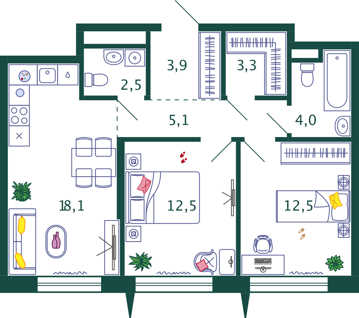 | Декабрь 2022 | 59,6-75,6 м2 | 25 335 976 - 32 884 989 ₽ | ~434 485 ₽ | |