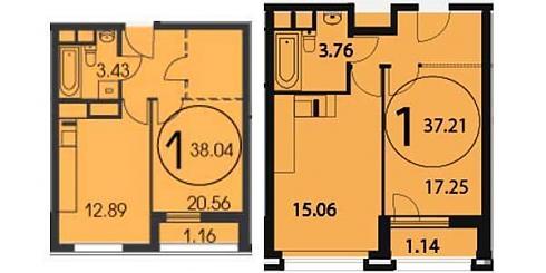 Планировки однокомнатных квартир и квартир, отмеченных значком 1/2Е, при почти полной идентичности их площадей, действительно отличаются размерами кухни: