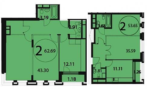 Тоже самое можно сказать и о двухкомнатных квартирах: 63 кв. м еще куда ни шло, но 54 кв. м это еще даже не «комфорт»: