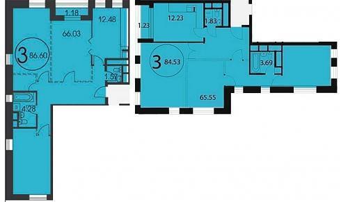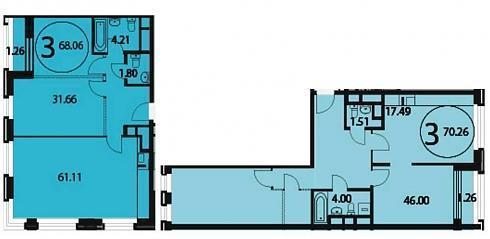 Варианты, отмеченные на «шахматке», как 2/3Е зависли где-то посередине между большими двухкомнатными и маленькими трехкомнатными квартирами, вызывая в памяти бессмертное «...для Атоса это слишком много, а для графа де Ла Фер слишком мало…». Интересно, что при раскрытии планировок Вы увидите гордую цифру «3»: