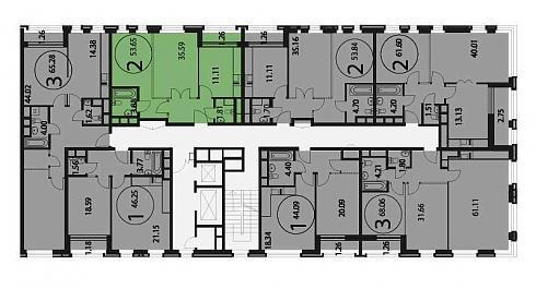 Четвертая секция второго корпуса окажется самой густонаселенной – здесь стандартной лестничной клетке расположено семь квартир:
