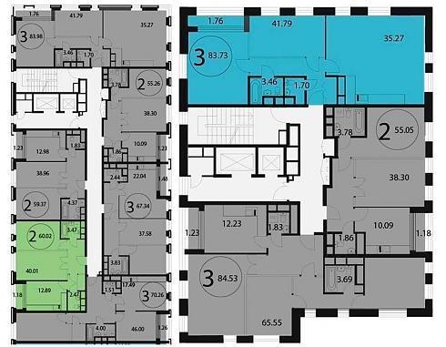 В двух секциях корпуса №1 на лестничной клетке находятся по пять квартир: