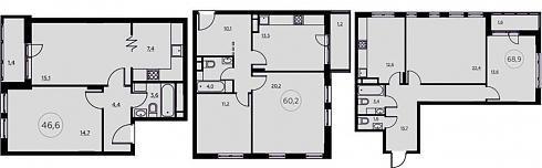 | Октябрь 2017 | 59-68,9 м2 | 4 298 400 - 6 665 090 ₽ | ~86 327 ₽ | |