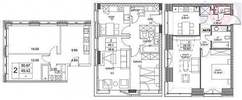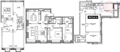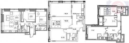 Тенденция к более экономичному подходу к формированию квартирного фонда прослеживается во всех трех рассматриваемых корпусах, в котором присутствуют трехкомнатные квартиры довольно экономичного уровня: