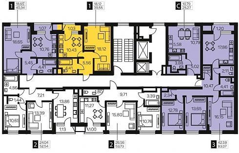 | Июль 2018 | 55,93-72,74 м2 | 5 102 602 - 6 514 445 ₽ | ~91 473 ₽ | 0.63% |