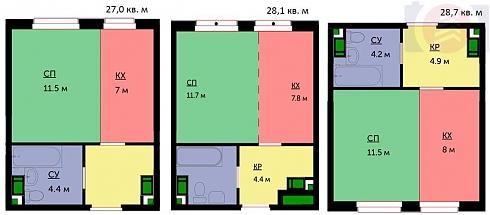 Официальному сайту ЖК «Новая Звезда» неведомо понятие «студия», впрочем, КРОСТ не употребляет его и в отношении всех остальных своих проектов. За счет наличия двух окон в квартирах площадью 27-29 кв. м можно попробовать поиграться с зонированием, но пытаться что-то здесь изолировать лучше не стоит: