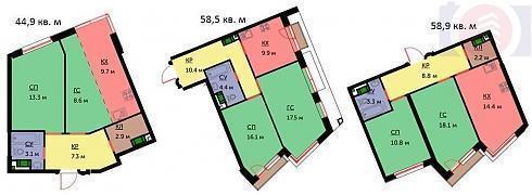 Жаль, что на представленных вариантах планировок классических двухкомнатных квартир КРОСТ постоянно забывает сделать внутреннюю поквадратную разбивку: