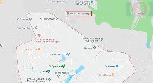 Строительство ЖК «Новая Звезда» на 25 га, выделенных под него на территории поселения Сосенское вблизи поселка Газопровод, началось в 2015 году. Несмотря на обилие в Яндексе соответствующих запросов, комплекс не имеет никакого отношения к Коммунарке, от территории которой ЖК отделен Бачуринской улицей.