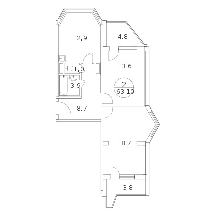2-комнатная квартира  63 м2