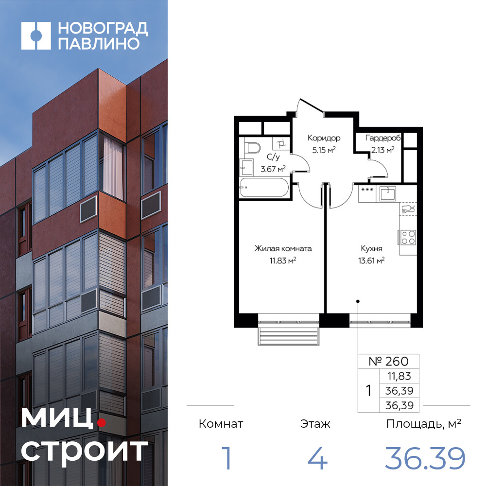 В корпусе №14 большинство вариантов будут иметь площадь в районе 36 кв. м, при этом лоджия привязана уже к кухне: