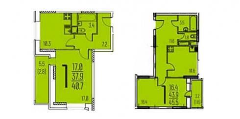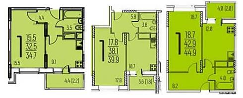 | Сентябрь 2018 | 34,4-45,5 м2 | 1 925 000 - 3 255 000 ₽ | ~65 570 ₽ | 4.5% |