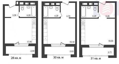| Август 2019 | 28,78-32,28 м2 | 3 561 240 - 4 196 400 ₽ | ~129 294 ₽ | |