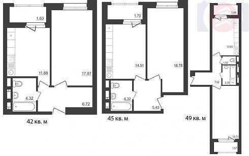 | Декабрь 2017 | 41,4-43,4 м2 | 4 499 999 - 4 500 039 ₽ | ~107 143 ₽ | |