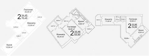| Декабрь 2016 | 62,66-75,89 м2 | 6 579 000 - 7 150 000 ₽ | ~100 212 ₽ | |