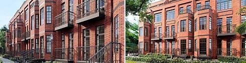 В строительстве применяется монолитно каркасная технология, внешние стены выкладываются из кирпича, после установки 10-сантиметрового утеплителя, фасады облицовываются немецким кирпичом ручной формовки. Квартиры оснащены открытыми балконами с коваными перилами и эркерными лоджиями, на верхних этажах будут обустроены мини-террасы. На фасадах предусмотрены корзины под внешние блоки кондиционеров.