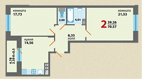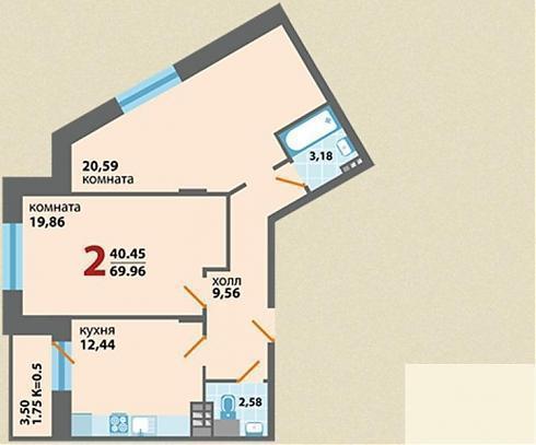 Если вам нужна двухкомнатная квартира, то выбирать предстоит из стандартных распашонок в первой секции,