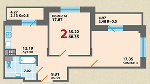 | Декабрь 2019 | 57,95-68,65 м2 | 6 026 800 - 6 971 700 ₽ | ~103 988 ₽ | |