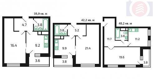 | Октябрь 2019 | 33-48,2 м2 | 3 460 800 - 4 964 600 ₽ | ~104 017 ₽ | |