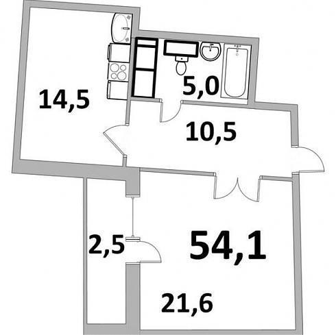 В квартире площадью 54,1 кв. м раздвигаются границы ванной комнаты: